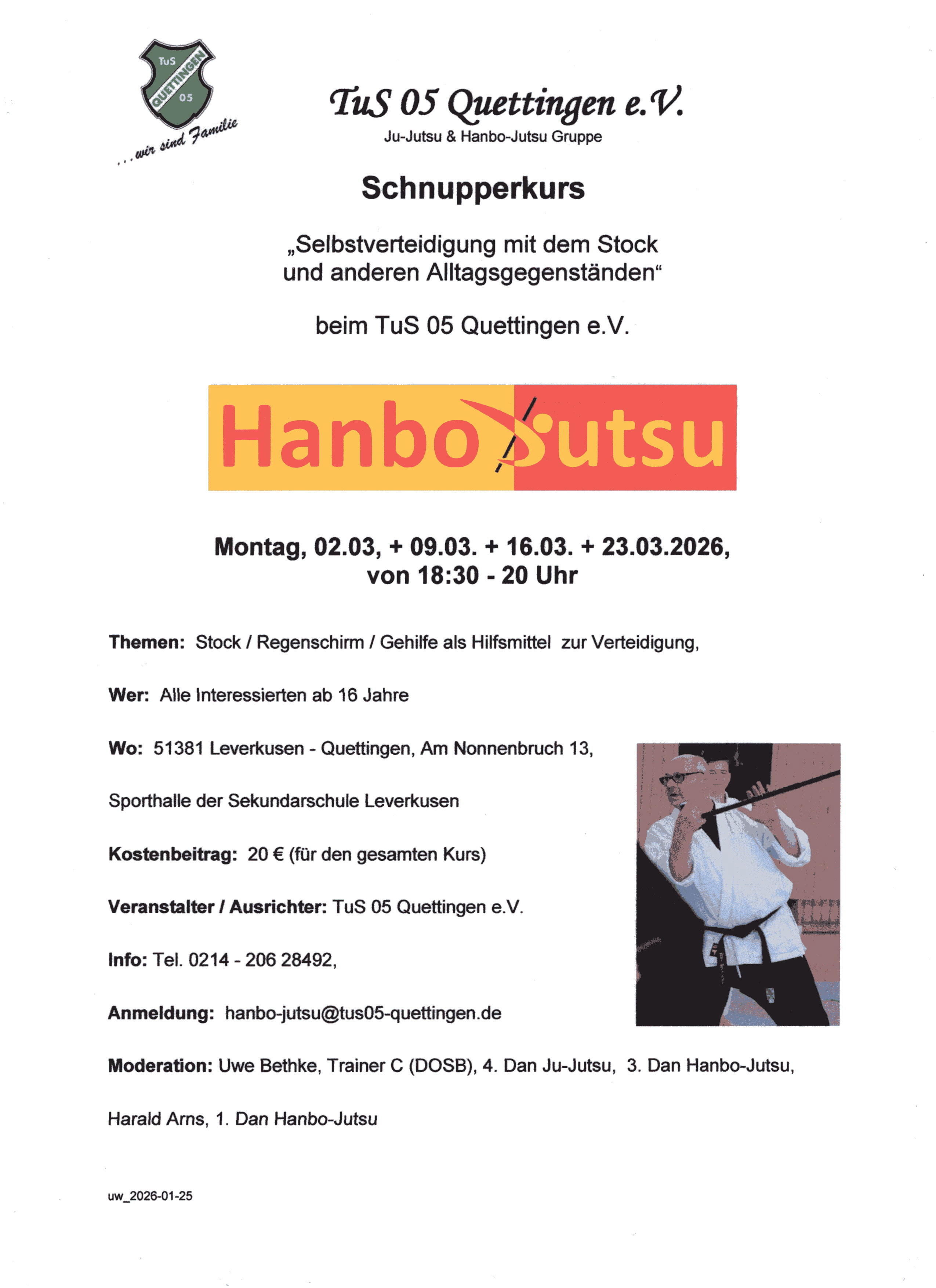 a) Kata+Formen: Waffen + waffenlos, Hanbo-Jutsu, Jiu-Jitsu, Karate